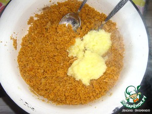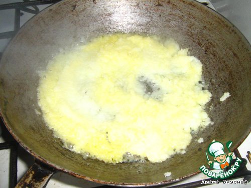 Измельченный до кашицы лук (луковица больше среднего размера) пережариваем на масле