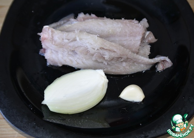 Минтай чистим, разделываем на филе, перекручиваем на мясорубке с луком и чесноком.