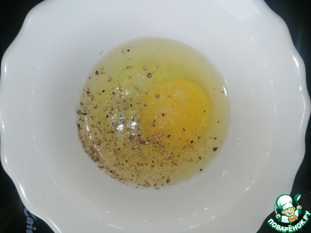К яйцу добавить белый перец и соль по вкусу. Перемешать.
