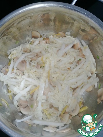 Добавить пекинскую капусту и жарить при средней t тоже пару минут.
