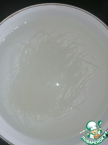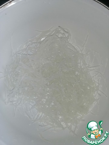 Фунчозу замочить в холодной воде ~ на 10-15 мин.
