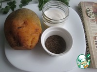 Продукты для приготовления и рядом книга, из которой взят рецепт. Сливки отсутствуют, потому что необходимость их добавить возникла в процессе приготовления. Брюкву заранее отварить и охладить. |