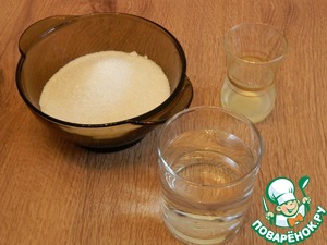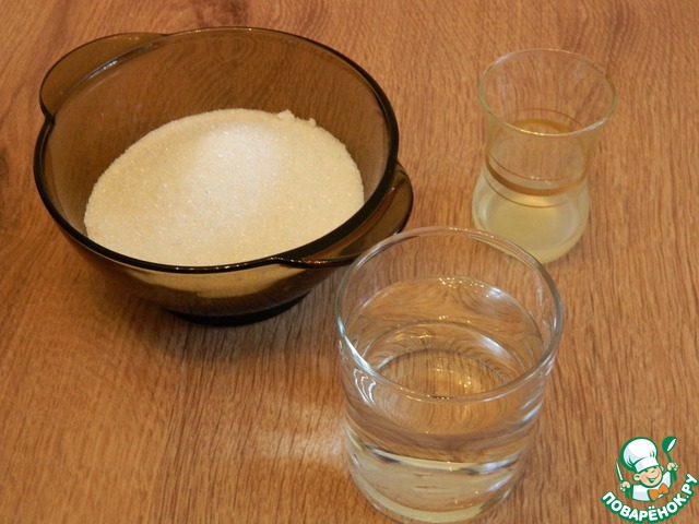 Сахар залить водой, хорошо развешать и поставить на огонь, как только сахар полностью растворится, капнуть лимонный сок и продолжать варить сироп до момента пока она загустеет, минут10-15.