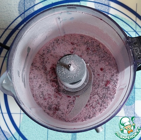 Для этого 30 грамм черники пробила блендером и смешала с сахарной пудрой до консистенции, которая меня устроила.