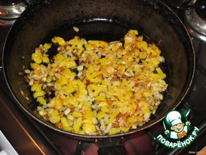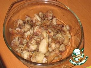 Куриное филе режем кусочками и обжариваем на растительном масле.