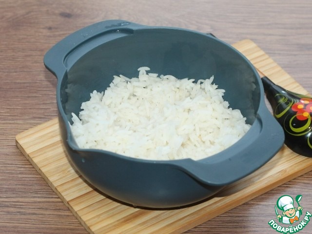 1. Приготовим рис. Промываем и варим рис в подсоленной воде по инструкции. Затем воду сливаем.