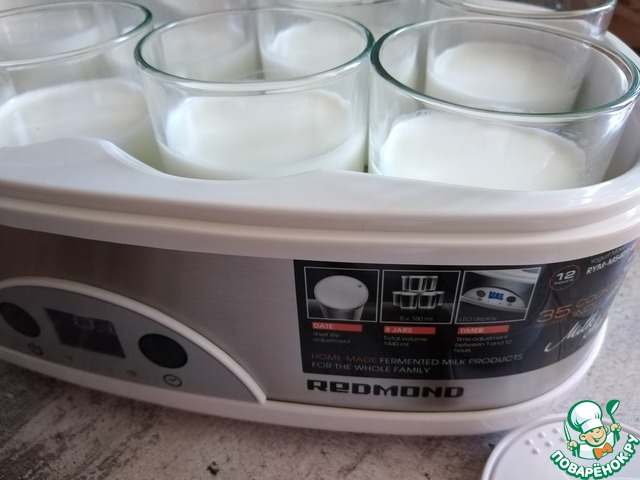 Йогурт делаю дома сама, используя йогуртницу REDMOND. Получается вкусный некислый натуральный йогурт, который я использую в разных блюдах и просто поесть.