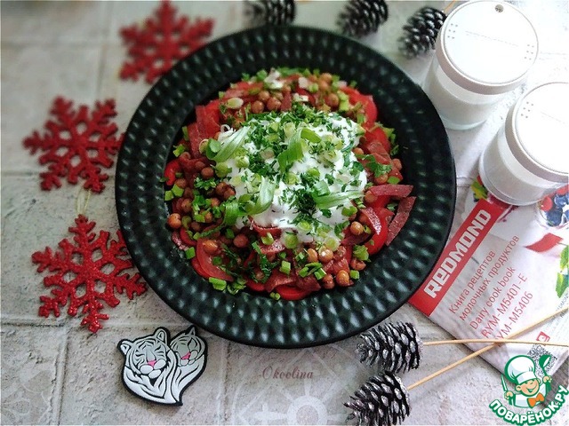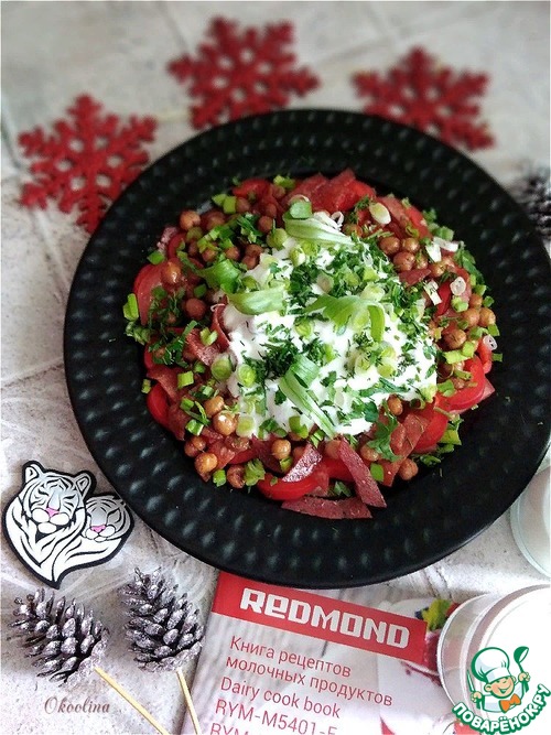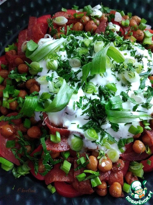 Рецепт «Салат с нутом и копчёной колбасой»: