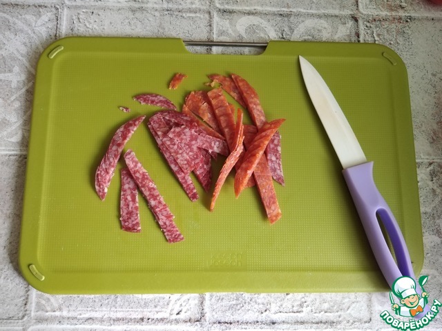 - Колбаса (у меня нарезка Пеперони и Салями 12 ломтиков) — 50 г