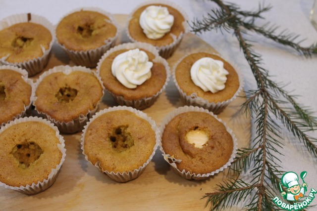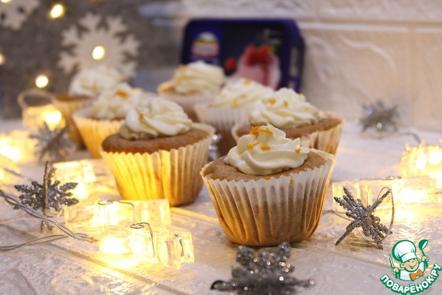 Воздушные нежные кексы-маффины к вашему праздничному столу. Мандариновый вкус отлично дополняет сливочно-творожный крем и сам бисквит. Попробуйте, готовятся быстро, съедаются ещё быстрее.