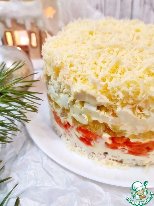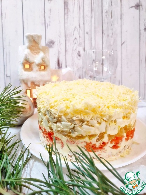 Вкусный и сытный салат. Красивый, яркий и такой аппетитный! Отличный вариант для праздничного стола.