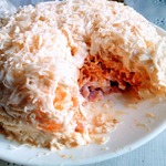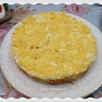 Продолжайте собирать салат - апельсины, яйцо. Каждый слой прослаивайте сеткой из майонеза. Последний слой сыр.