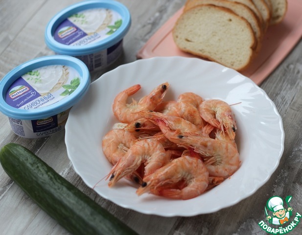 Ингредиенты для «Канапе с креветками и творожным сыром»: