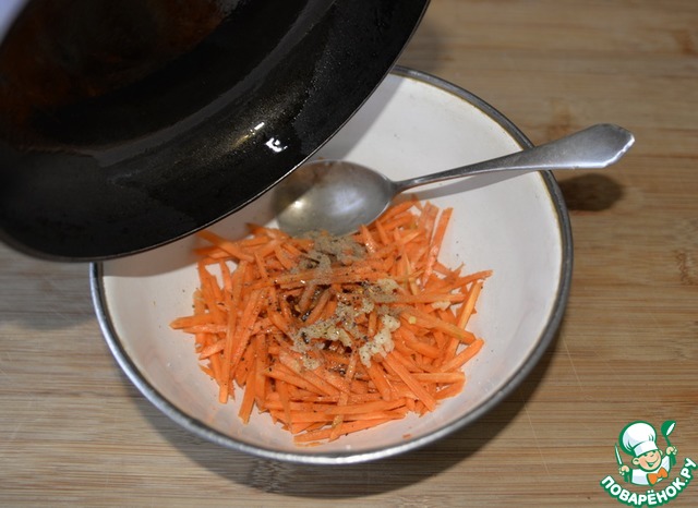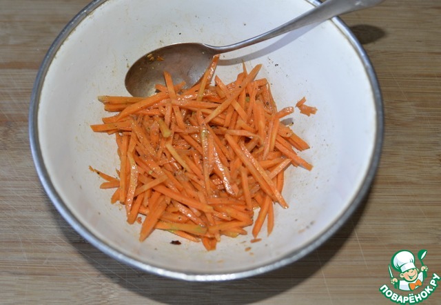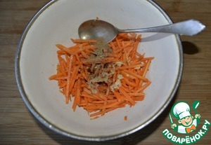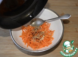 Раскалённое масло выливаем на приправы на моркови.