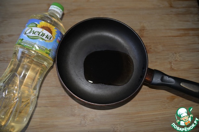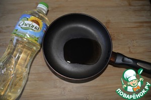 На сковороду наливаем масло, у меня подсолнечное "Олейна", нагреваем до лёгкого дымка.