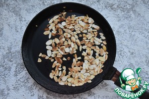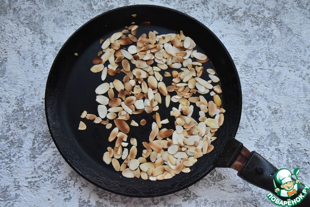 Миндальные лепестки подсушиваю на сухой сковороде и остужаю.