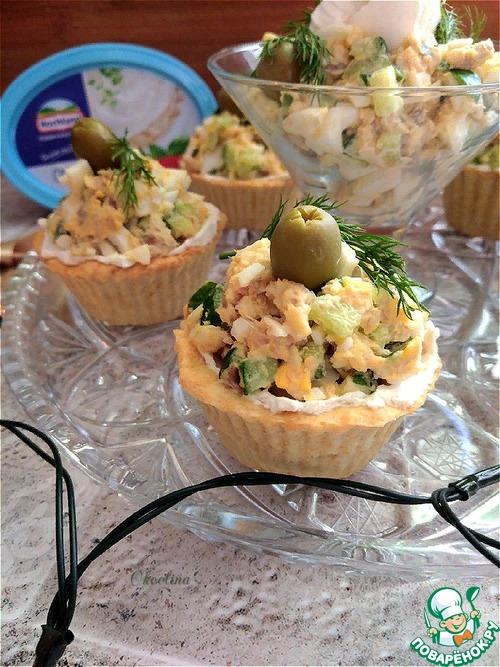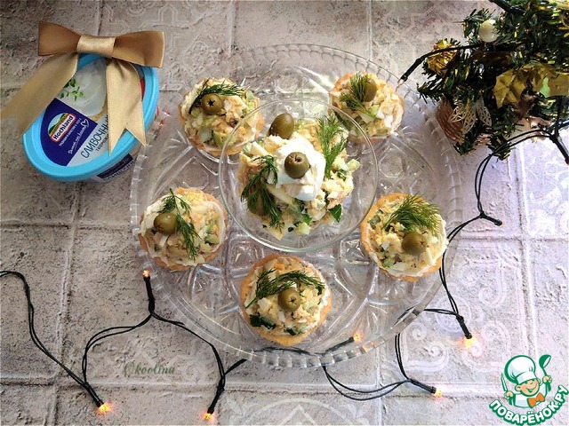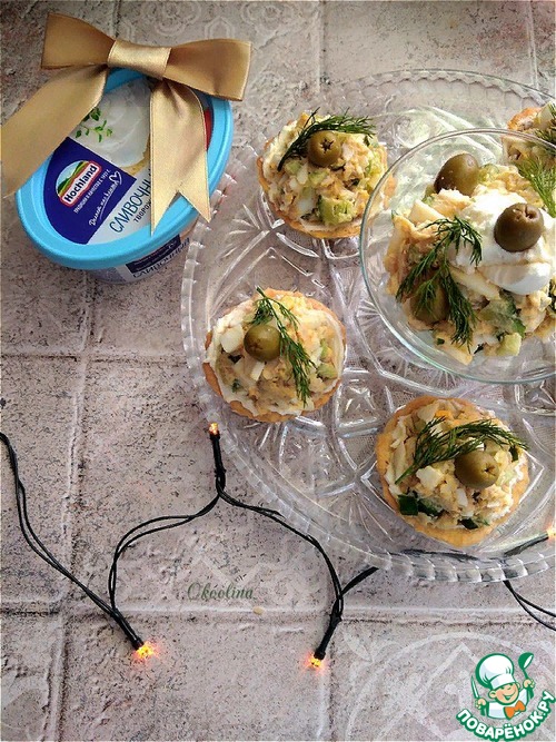Рецепт «Тарталетки с творожным сыром и салатом»: