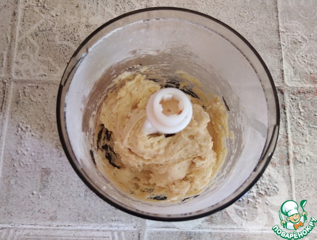 Тесто для тарталеток делаем простейшее. Его можно замесить руками, я буду использовать измельчитель вначале. Солить тесто я не буду, потому что салат будет солёным.