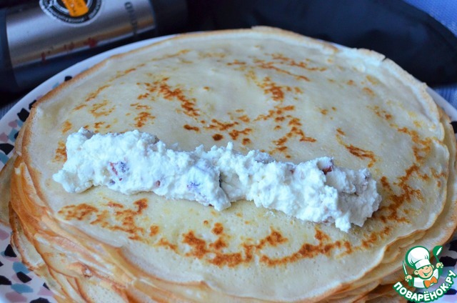 Рецепт «Блинчики с творогом, миндалём и вишней»: