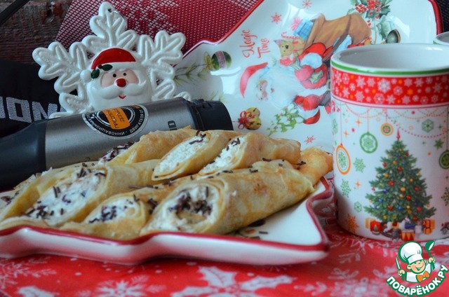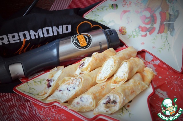А как же на новогоднем столе без фаршированных блинчиков?! В моей семье никак! Думаю, и во многих семьях так же. Предлагаю отведать нежных блинчиков с воздушным творогом и жареным миндалём, с сушёной вишней и с шоколадной посыпкой. Ну как? Даже представив это, уже вкусно. Угощайтесь.