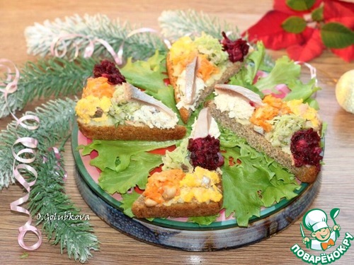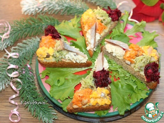 Бутерброд "Пестрый" - это вариант праздничной закуски на основе черного хлеба, филе сельди, овощей и мягкого сыра Hochland. Восхитительно праздничный вид и аромат, неожиданные сочетания вкусов и красок. Рецепт-подарок занятой хозяйке для быстрого приготовления. Главное заранее отварить овощи.