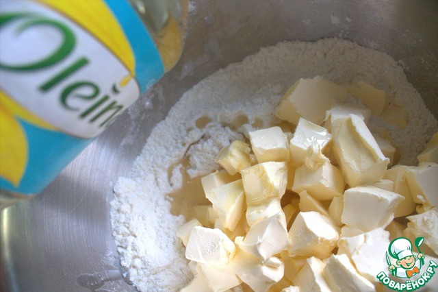 Добавить мягкое масло и влить подсолнечное масло "Олейна". Перетереть руками, как в арабских семьях или тестомесом.