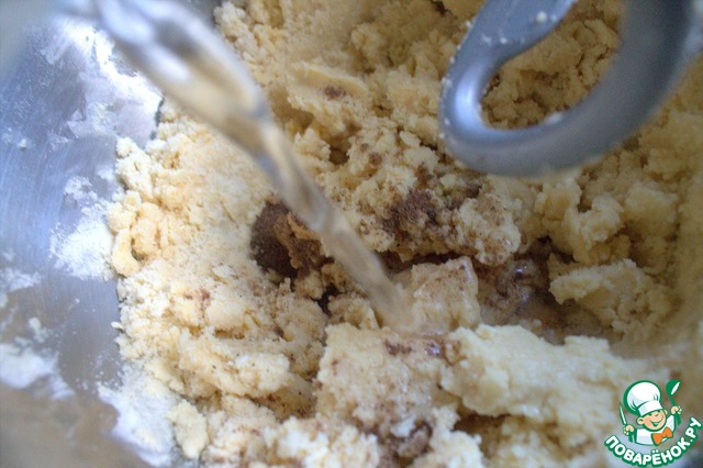 Влить воду постепенно. В оригинале рецепта добавляли воду пригоршнями. Скатать в шар.