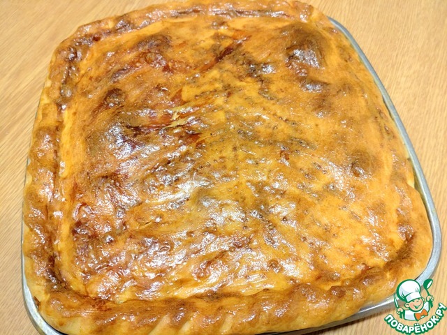 Выпекать около 40 минут при 180*. При выпекании пирог поднимается.