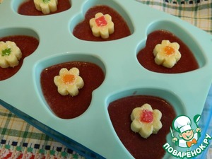 Заполним формочки на 2/3 ягодной массой, поставим в холодильник, минут на 15-20 пока желе начнет застывать.