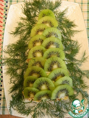 Выложим киви, сверху вниз, накладывая каждый следующий слой на предыдущий.