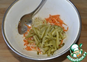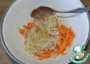 Кладём Лук к моркови по-корейски.