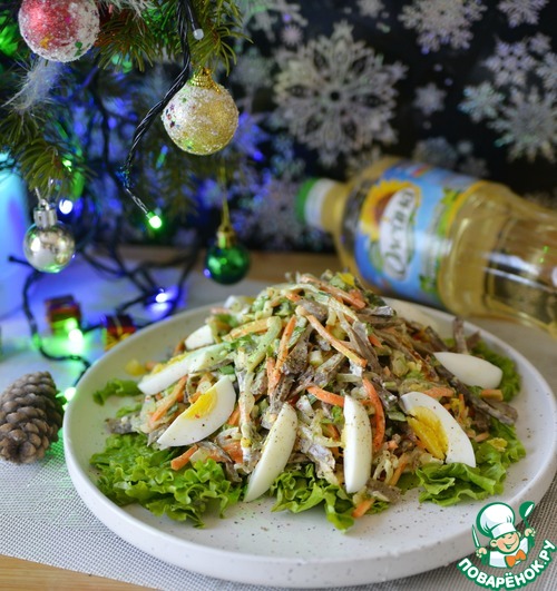 В этом году мы решили с сестрой устроить Новый год в стиле СССР, который распался 30 лет назад. Кроме классики, решили приготовить блюда, которые готовили мама и бабушки. Вот, этот салат, именно с тех времён, мы всегда его очень любили.