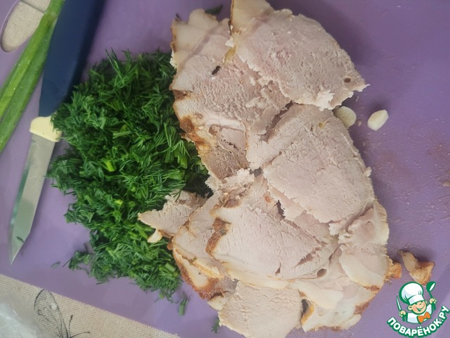 Когда мясо готово, из прокола ножом вытекает прозрачный сок. Температура внутри куска мяса должна быть около 70°С. Готовому карбонаду дать отдохнуть 10 минут при комнатной температуре, затем нарезать и подать.