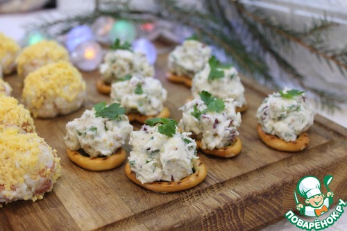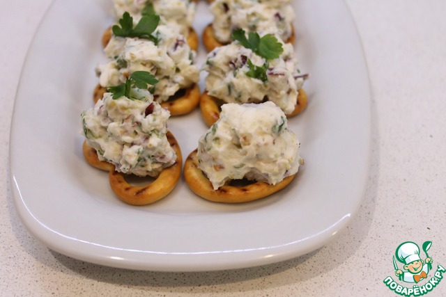 Рецепты найдены на просторах интернета, опробованы и одобрены моей семьёй и мной)) Настоящая игра вкусов при минимуме затрат: нежная спокойная первая закуска и яркая пикантная хрустящая вторая закуска. Особенно вкусно, когда попадается кусочек вяленой клюквы. Мммм, попробуйте и обязательно с крекером.