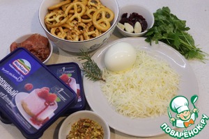 Яйцо нужно отварить и почистить, твёрдый сыр натереть на мелкой тёрке, подготовить остальные ингредиенты для закусок.