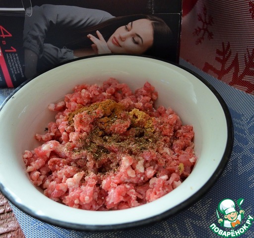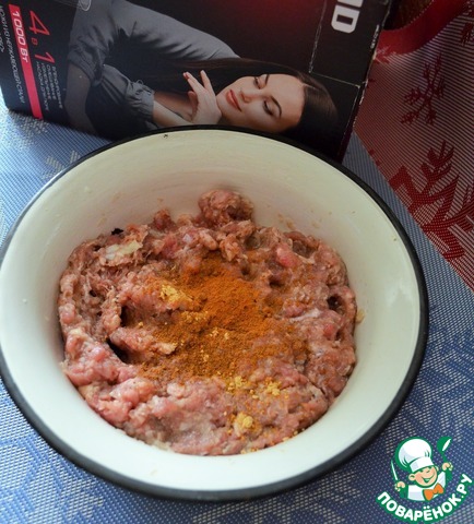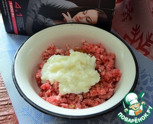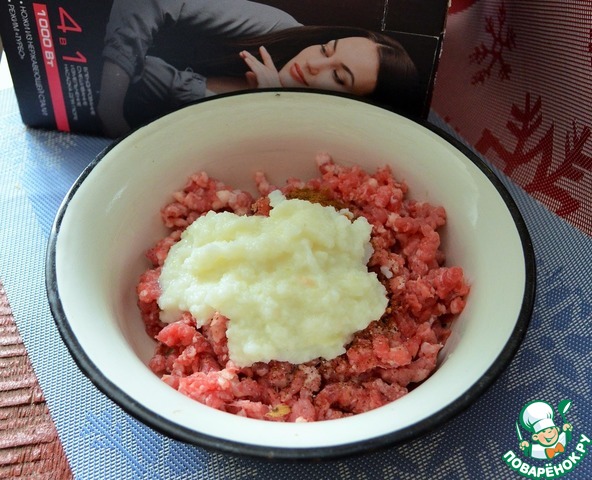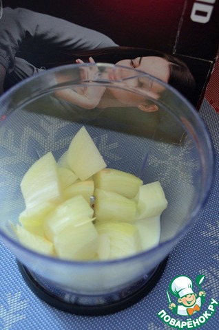 Приготовить фарш. Мясо измельчить на мясорубке.