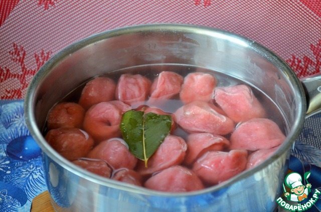 Отварить в кипящей солёной воде, с лавровым листом и 2 гвоздичками. 7 минут, лёгкое кипение. При варке цвет немного посветлел.