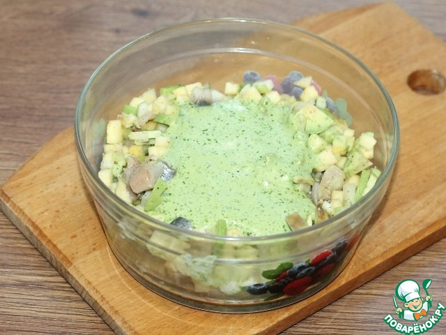 Рецепт «Салат с авокадо и сельдью в верринах»: