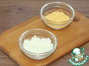10. Отвариваем куриные яйца, охлаждаем и отделяем белок от желтка, измельчаем на терке.