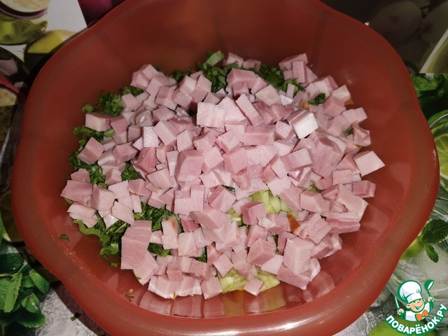 Вымыть и порубить кинзу. Отложить немного для украшения.