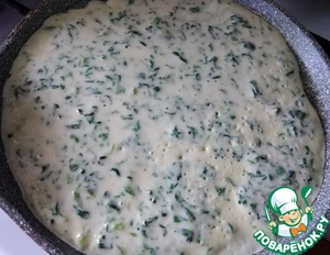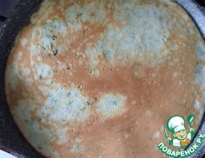 Равномерно вмешать шпинат в тесто. Даём ему немного постоять минут 5-10 и начинаем выпекать блины.