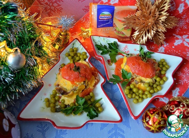 Из этого нехитрого набора продуктов мы приготовим праздничное горячее блюдо. Фарш у меня заправлен солью, перцем, луком. От размера помидоров зависит и количество других продуктов.