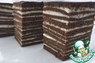 Из пергамента вырезать 2 листа бумаги по размеру панели. Размазать тесто по пергаменту лопаткой. Пока один корж выпекается, размазать тесто на втором листе. Всего получается 7 коржей. Время выпечки 1 коржа 3-4 минуты.