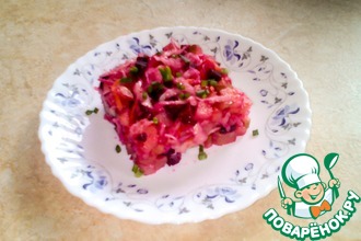 Рецепт из сборника салатов. Для любителей граната в салатах, надеюсь, будет интересно.