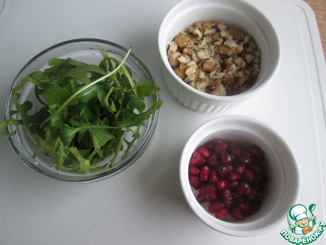 Вместо кресс-салата я взяла горсть рукколы, этого было достаточно для вкусового дополнения. По желанию можно добавить большее количество. -