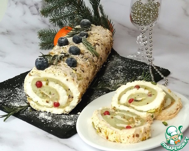 Я предлагаю приготовить рулет с фисташками и чаем Матча, он даст цвет и нежный аромат.