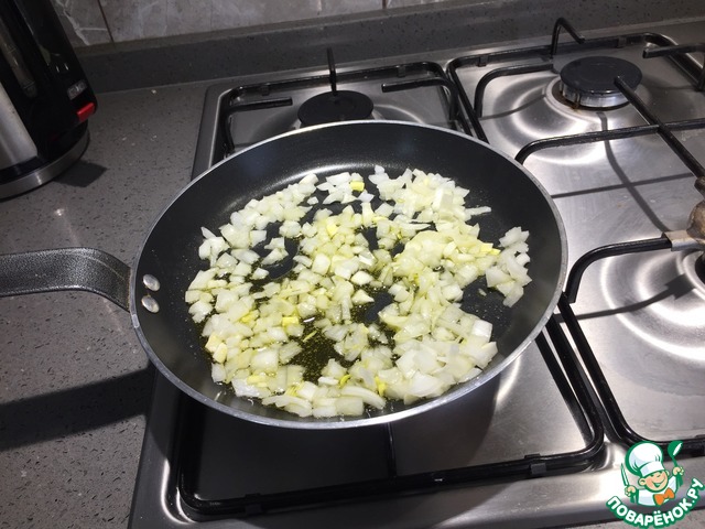Обжариваем лук 2-3 минуты до появления легкой румяности.