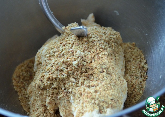 Добавить к тесту молотые семечки и вновь смешать до однородности.