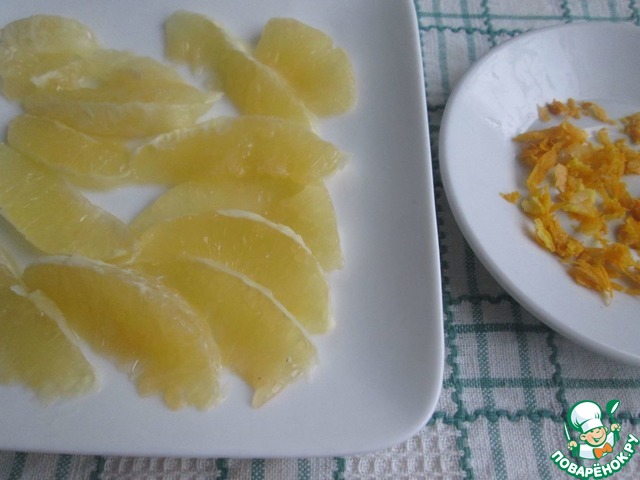 С лимона снять цедру, затем лимон очистить, и вырезать дольки без перегородок.