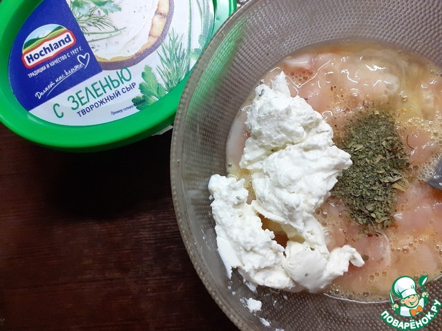- Сыр творожный (Hochland с зеленью) — 2 ст. л.
